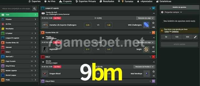 O 9bm oferece uma grande seleção de opções de apostas em e-sports com probabilidades competitivas